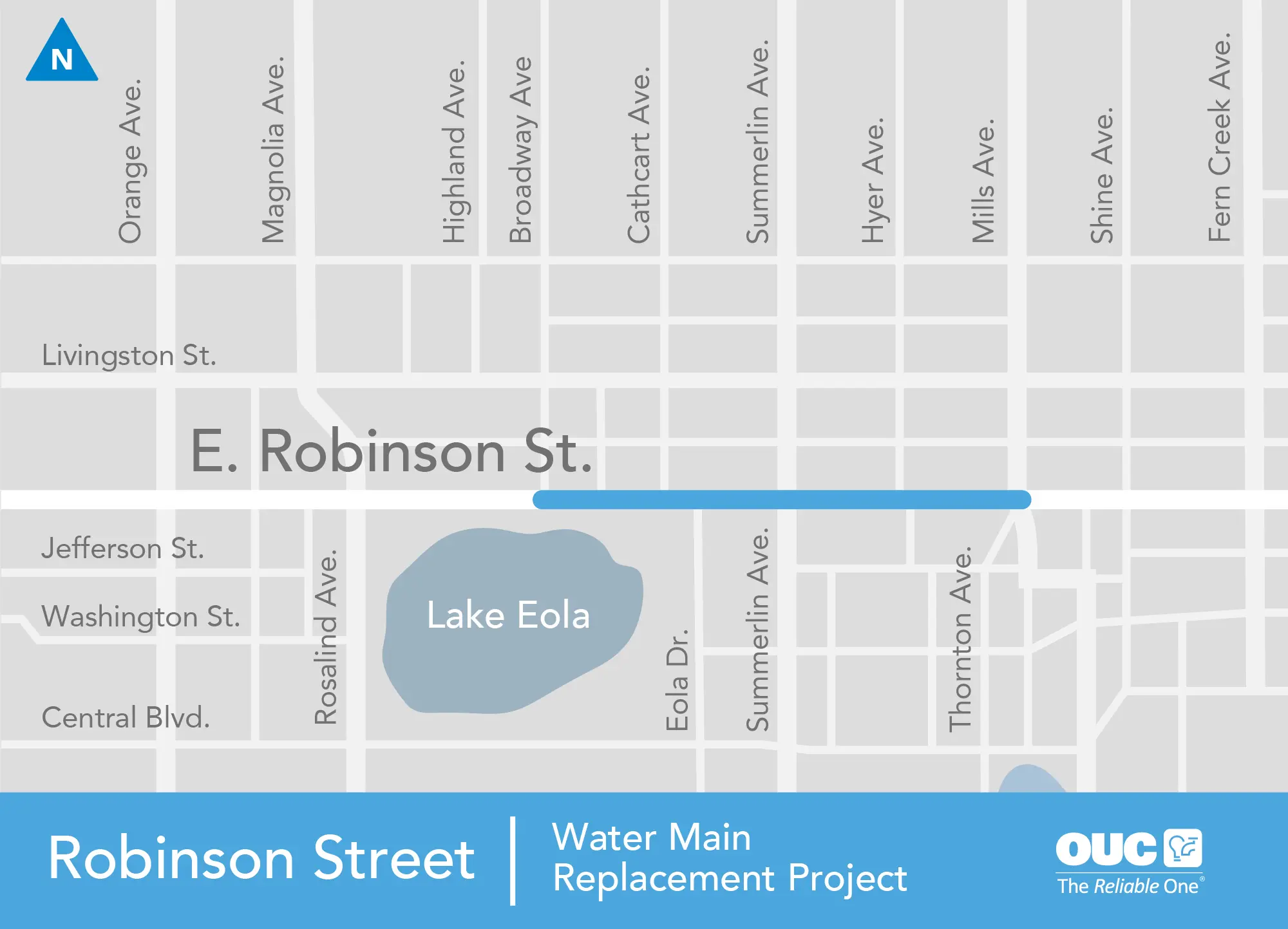 To provide you with the most dependable and resilient services and to accommodate Orlando’s continued growth, OUC – The Reliable One has upgraded water main infrastructure in the Robinson Street area of downtown Orlando from Broadway Avenue to North Mills Avenue.