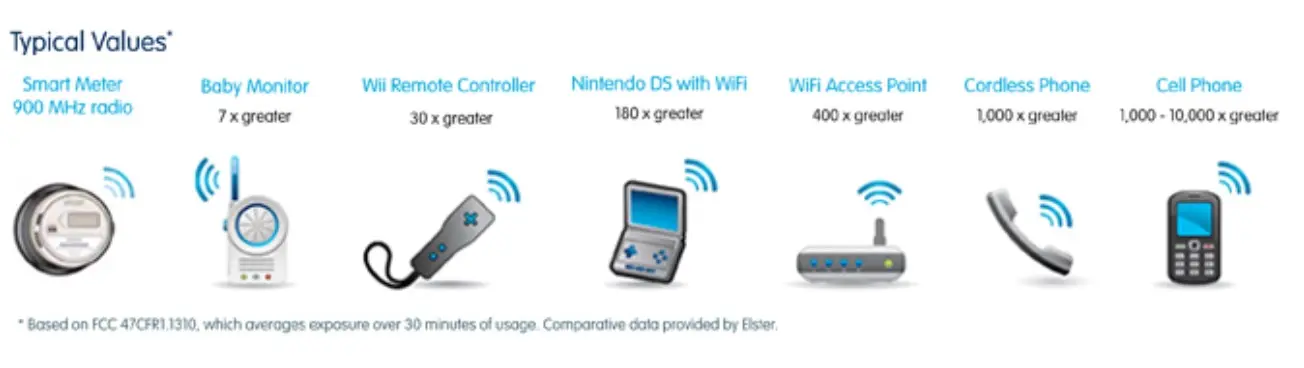 Digital meters send information about electricity use to utilities by RF signals. The exposure from digital or smart meters is much lower than other common sources for two reasons: 1) infrequent signal transmission, and 2) distance from the source.