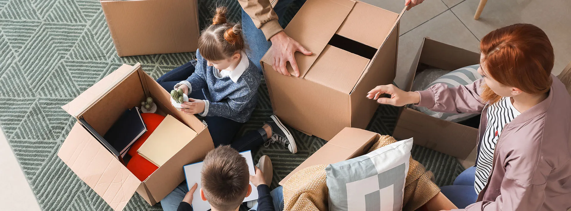 A young family packing their belongings, getting ready to move to a new home.