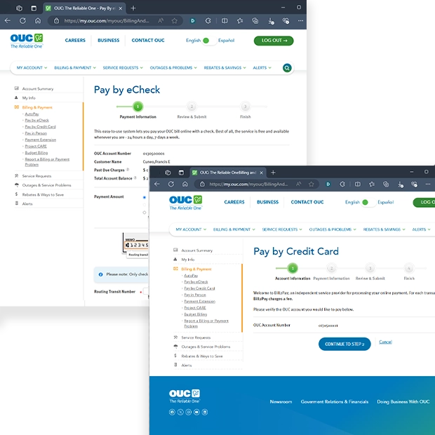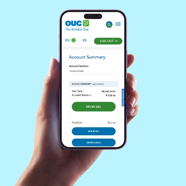 To complete your registration, you must log in to myOUC with your OUC account number and PIN. Double-check that the information entered is exactly as it appears on your bill statement—this includes letters, numbers, punctuation and spaces. OUC requires this exact match to your billing information to ensure both online security and privacy.
